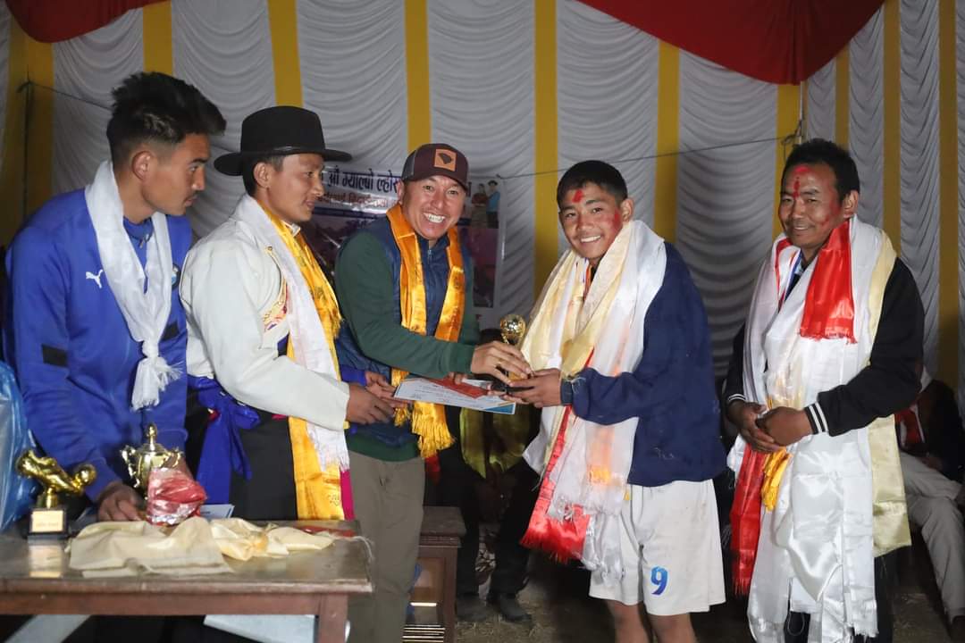 लालिगुँरास युथ क्लबका खेलाडी तक्सिक भोटिया सार्वदिक गोल पुरस्कारबाट पुरस्कृत हुनु भएको खेल प्रतियोगिता संयोजक छितेन लिङ्बोले बताउनुभयो ।