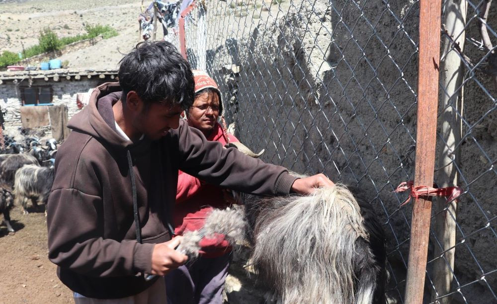 ‘ऊन निकाल्ने आधुनिक औजारको अभावमा कैँचीको सहाराले काट्ने गरिन्छ’, उनले भने। ‘सीपयुक्त जनशक्तिको अभावका कारण ऊनबाट कपडा बनाउने चलन हराउँदै गएपछि खपत पनि घटेको हो ।’